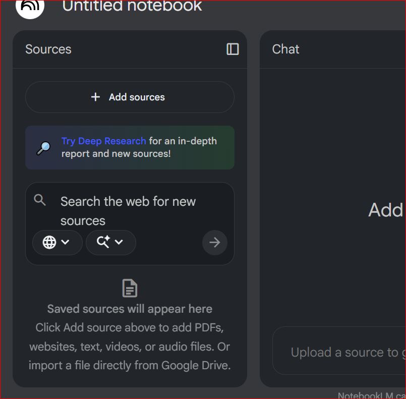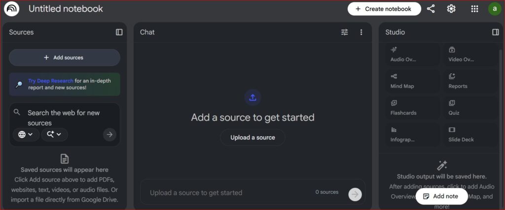 الموارد الخارجية: يمكنك تحميل المقالات أو الدراسات من مصادر أخرى غير المنهج الدراسي لإثراء فهمك، ثم استخدام NotebookLM لاستخلاص الأفكار الرئيسية.