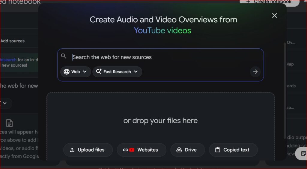 الآن، حان وقت إثراء مشروعك بالمواد الدراسية. يتيح لك NotebookLM استيراد مصادر متنوعة: