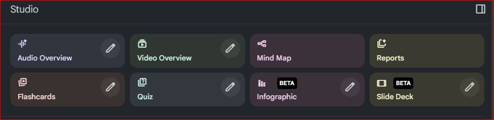 • الخطوة 4: بناء ‘لوحة دراسة’ مخصصة لكل امتحان لسهولة المراجعة: أنشئ مستندًا جديدًا داخل NotebookLM أو استخدم ميزة الملاحظات لإنشاء “لوحة دراسة” مخصصة. قم بتضمين أهم الملخصات، المفاهيم الرئيسية، الأسئلة الصعبة، والإجابات النموذجية. ستكون هذه لوحتك النهائية للمراجعة السريعة قبل الامتحان.