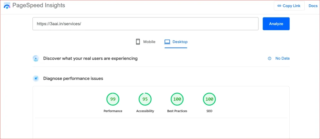 pagespeed.web.dev Score غالباً: