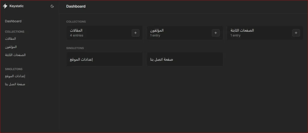 • Keystatic لإدارة المحتوى محلياً بدون لوحة تحكم مبنية على الخوادم
