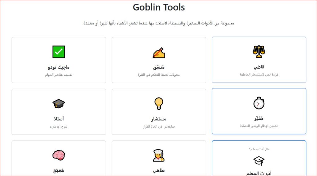 رغم أن Magic To Do هي أشهر أدوات Goblin Tools، إلا أن المنصة في الحقيقة تقدم منظومة ذكية متكاملة من الأدوات الصغيرة، كل أداة منها مصممة لحل مشكلة ذهنية أو معرفية محددة، دون تعقيد أو تشويش.