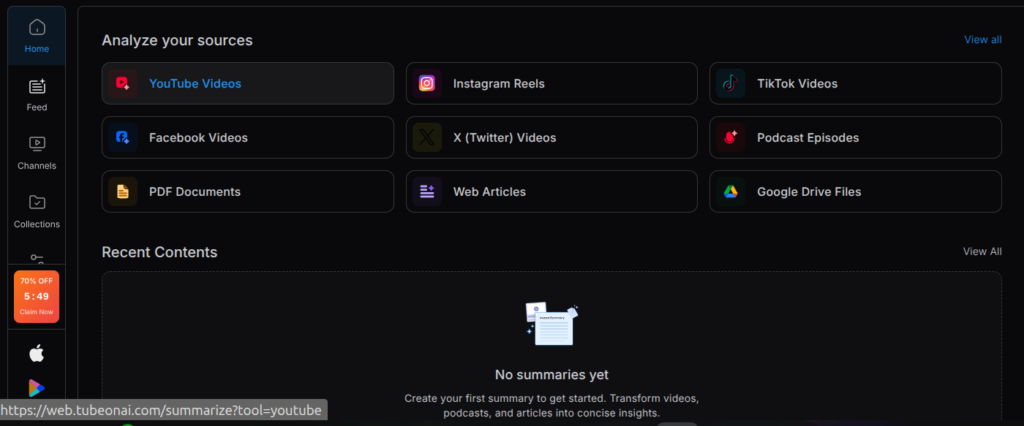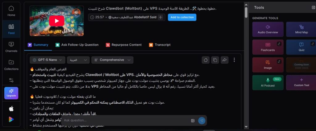 يقدم TubeOnAI نفسه كـ “محرك المعرفة الذكي” الذي ينهي هذه الأزمة. الأداة ليست مجرد ملخص آلي، بل هي منصة متكاملة مصممة لـ هضم المحتوى (Digest) وإعادة تدويره (Repurpose) بشكل آلي، مدعومة بأقوى نماذج الذكاء الاصطناعي في السوق.