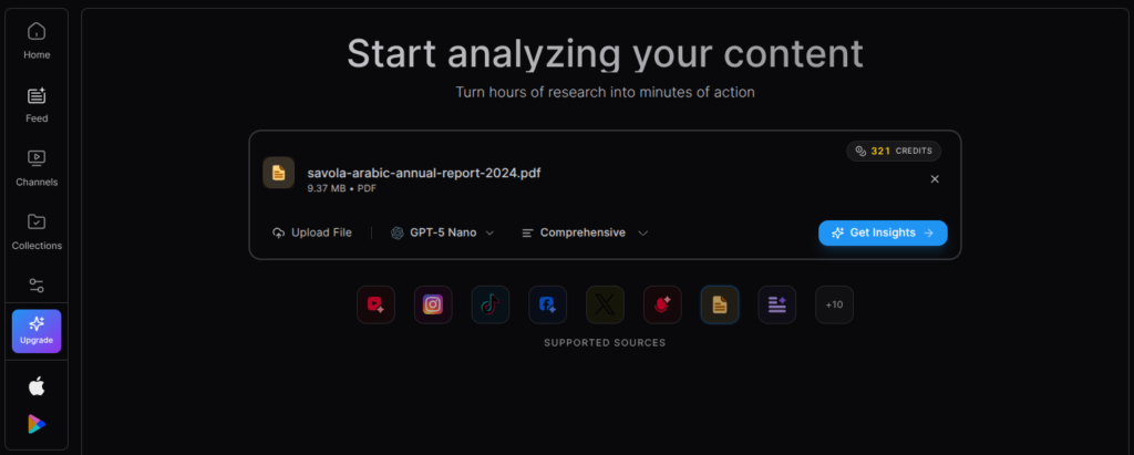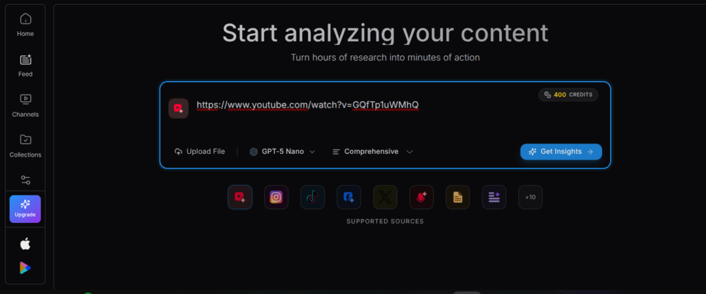 تحويل فيديو طويل الى تغريدات (Twitter Threads)، أو منشور LinkedIn احترافي، أو حتى سكريبت (Script) لفيديو قصير (Shorts) في دقائق. هذا يضمن سرعة نشر (Publishing Velocity) غير مسبوقة.